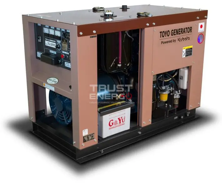 Дизельный генератор Toyo TG-19TPC с АВР номинальной мощностью 11 кВт с двигателем Kubota - отличный электроагрегат демонстрирующий уверенный приём нагрузки как резервный источник питания, так и основной.